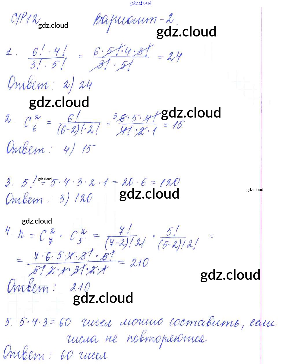 СР-12. Элементы комбинаторики Ответы к Самостоятельным работам по Алгебре 9 класс Самостоятельные и контрольные работы Глазков УМК Экзамен