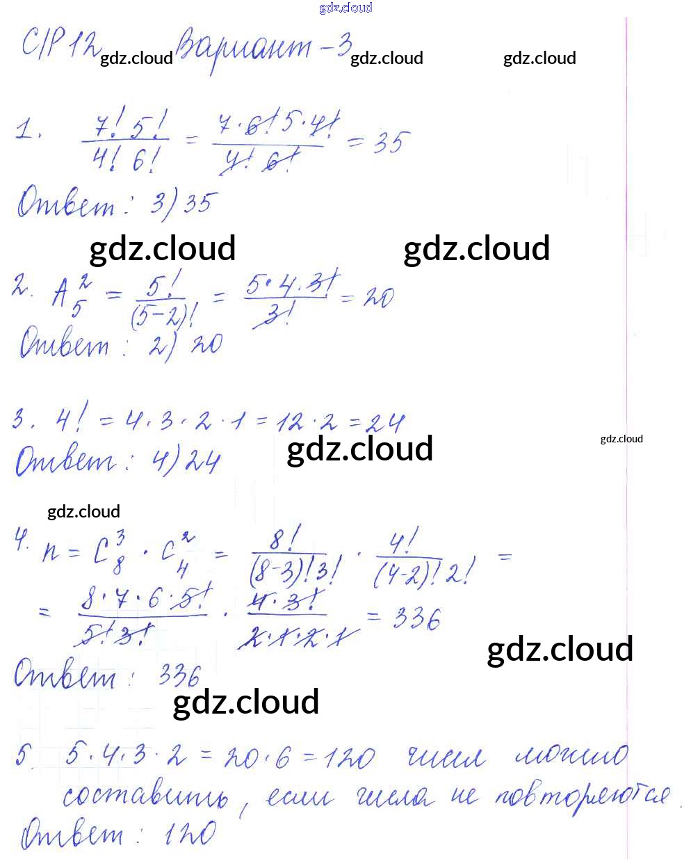 СР-12. Элементы комбинаторики Ответы к Самостоятельным работам по Алгебре 9 класс Самостоятельные и контрольные работы Глазков УМК Экзамен