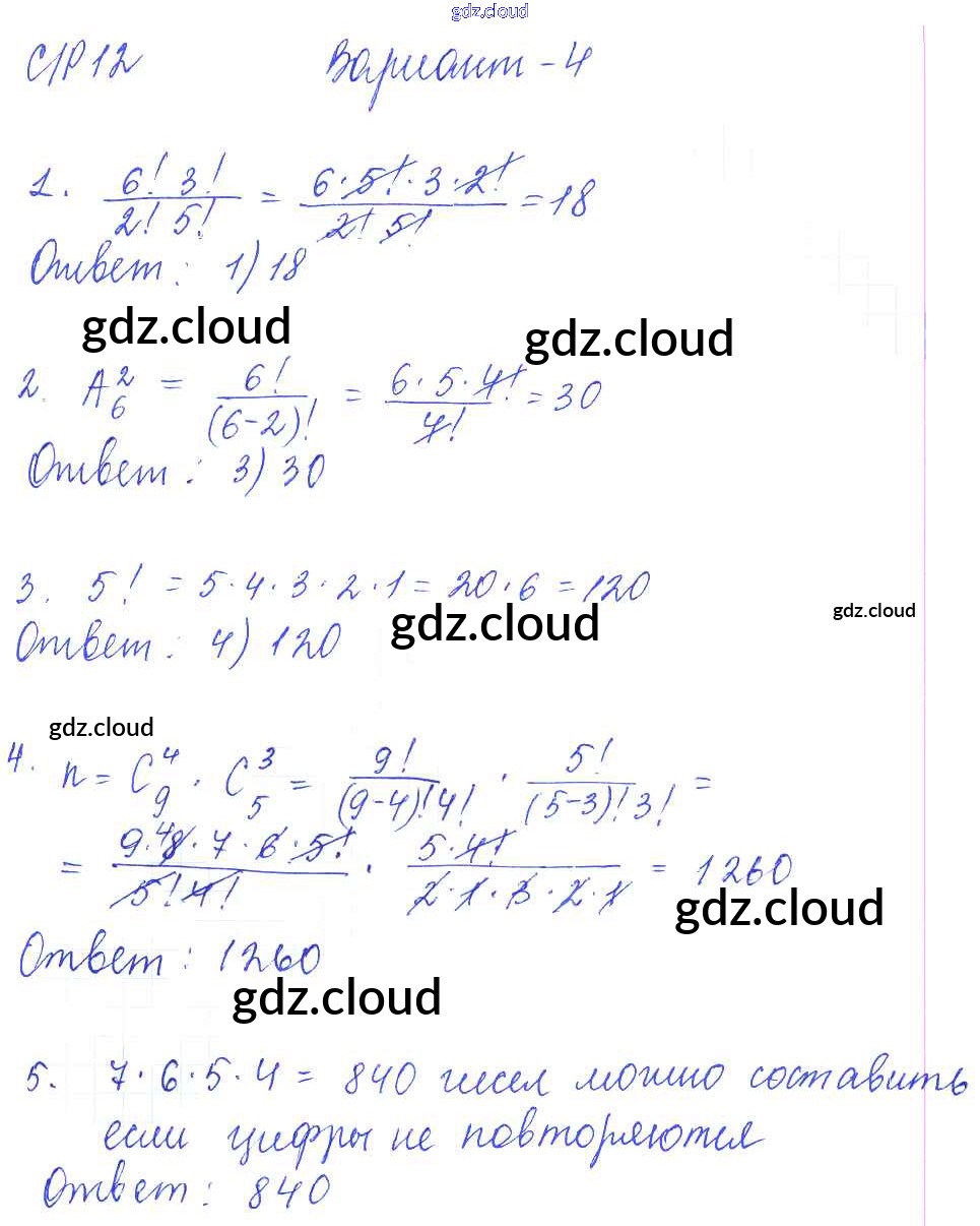 СР-12. Элементы комбинаторики Ответы к Самостоятельным работам по Алгебре 9 класс Самостоятельные и контрольные работы Глазков УМК Экзамен