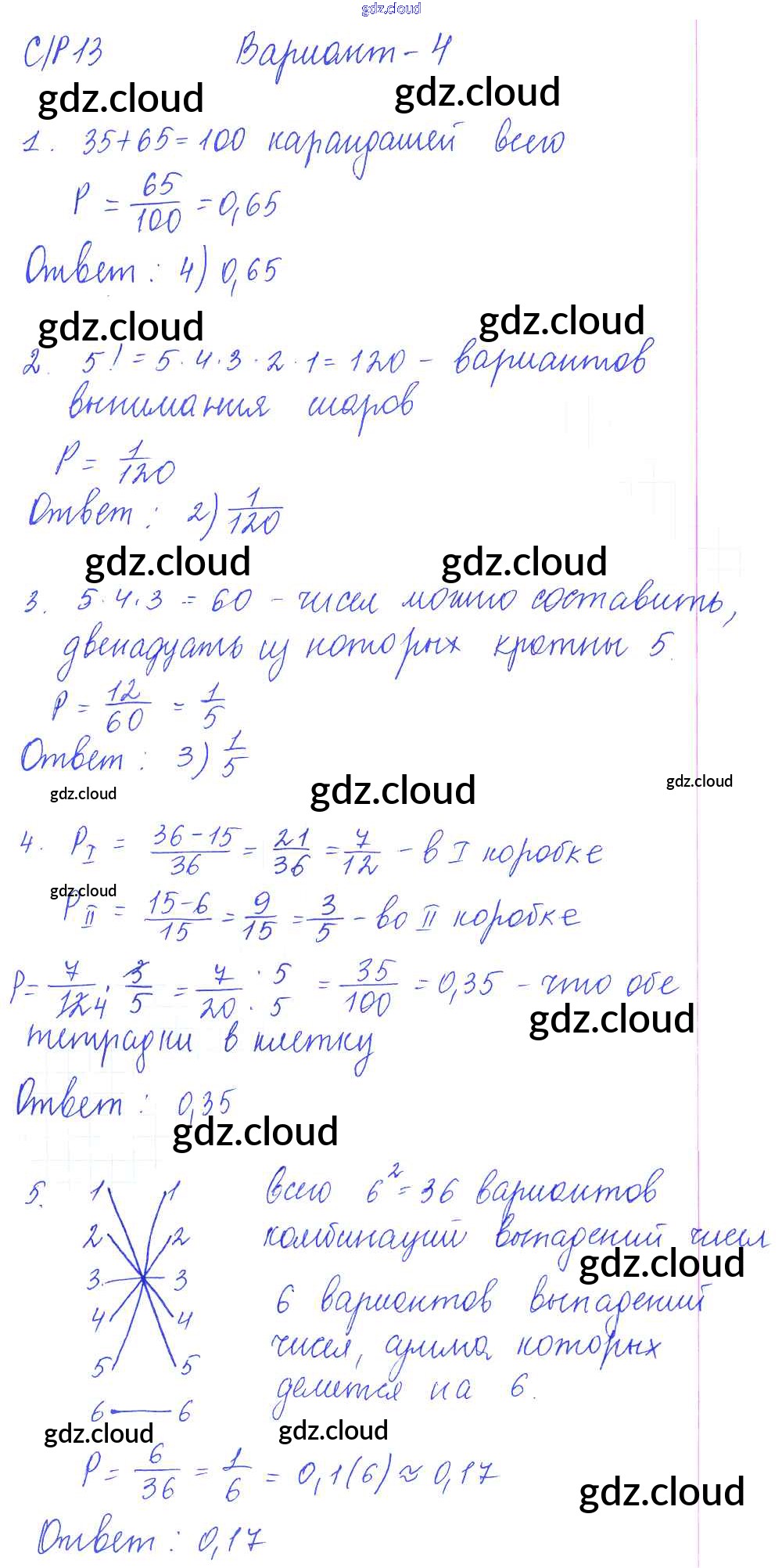 СР-13. Начальные сведения из теории вероятностей Ответы к Самостоятельным работам по Алгебре 9 класс Самостоятельные и контрольные работы Глазков УМК Экзамен