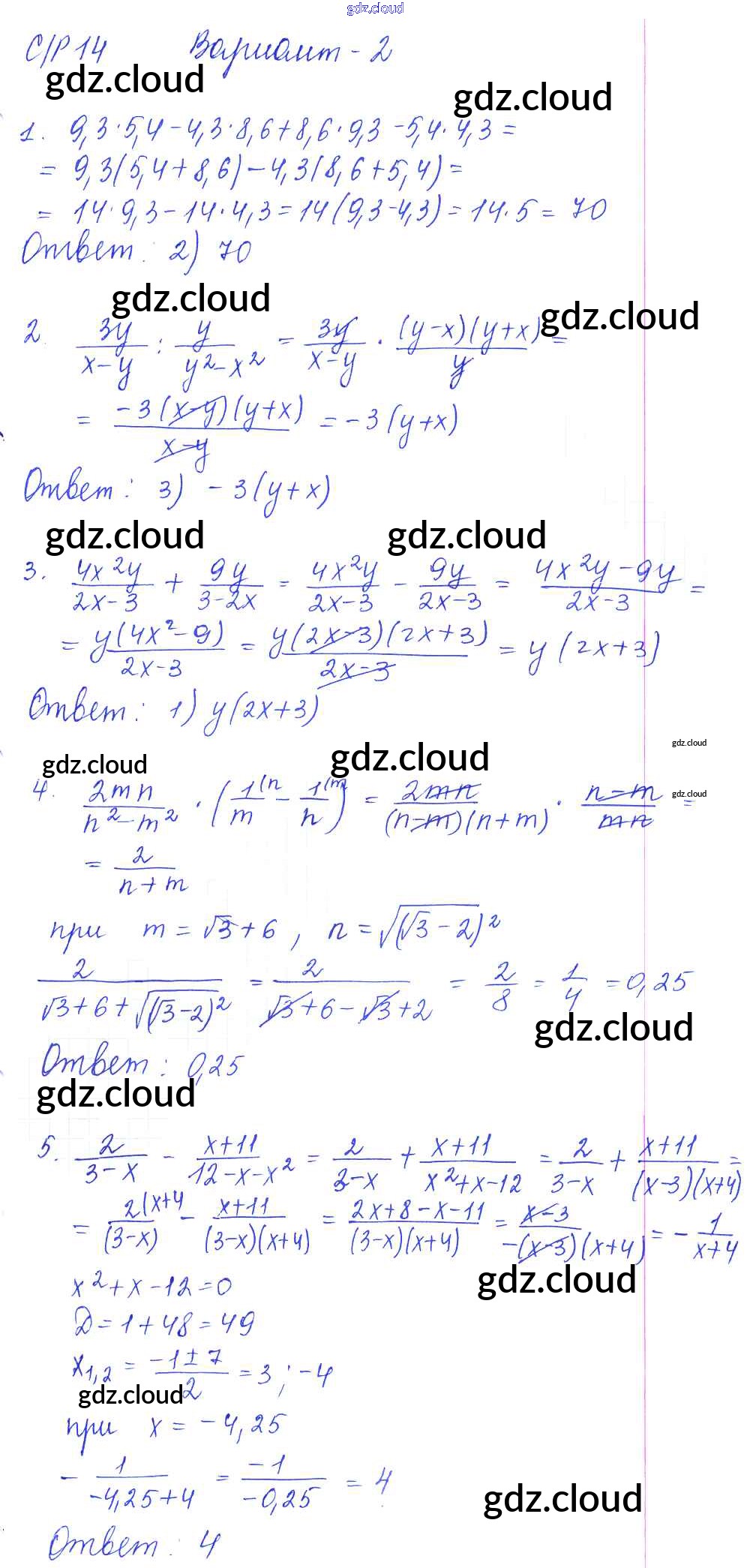 СР-14. Итоговое повторение. Преобразование целых и дробных выражений Ответы к Самостоятельным работам по Алгебре 9 класс Самостоятельные и контрольные работы Глазков УМК Экзамен