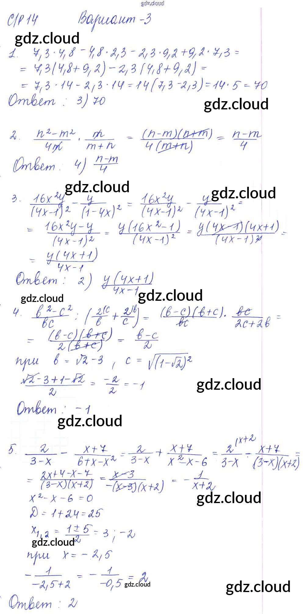 СР-14. Итоговое повторение. Преобразование целых и дробных выражений Ответы к Самостоятельным работам по Алгебре 9 класс Самостоятельные и контрольные работы Глазков УМК Экзамен