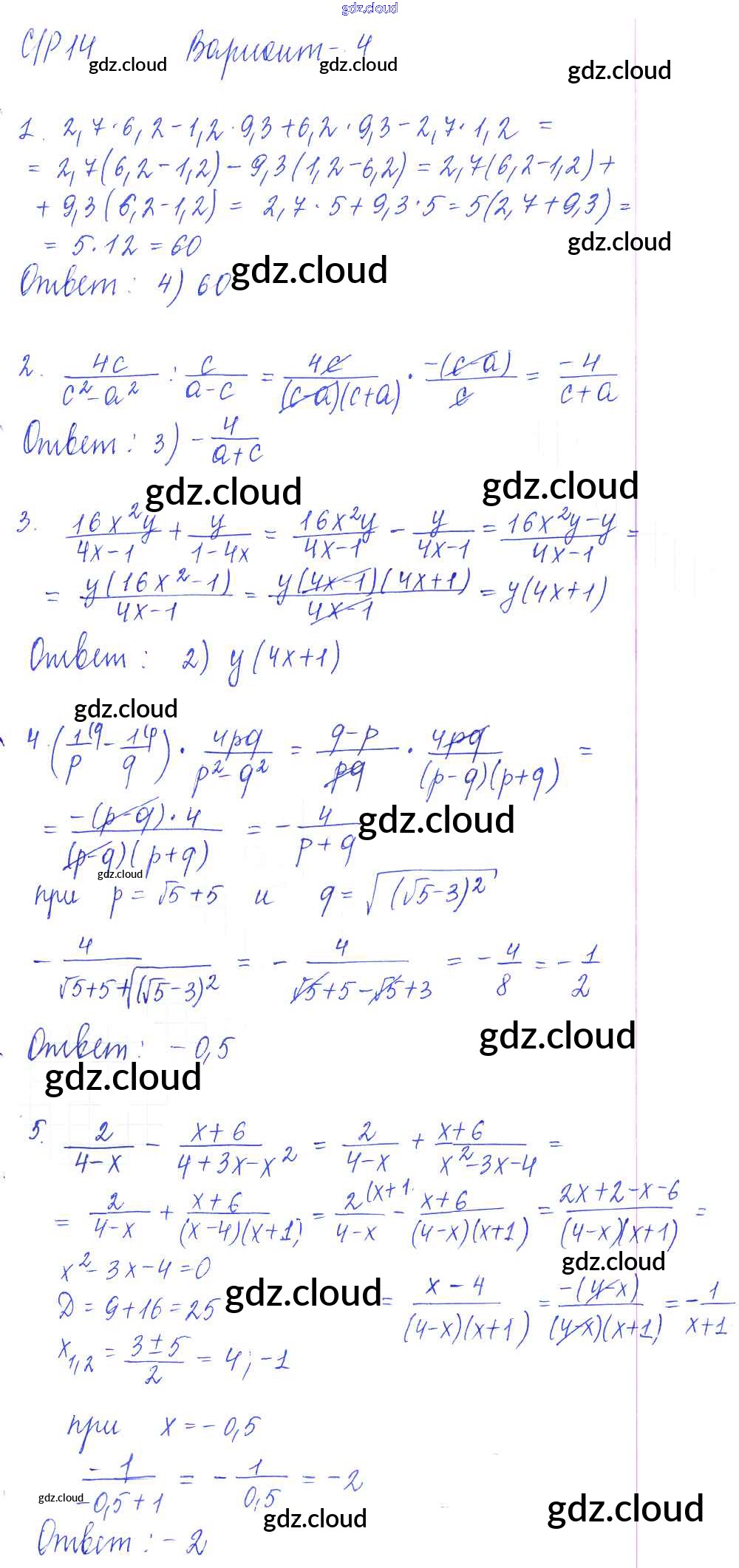 СР-14. Итоговое повторение. Преобразование целых и дробных выражений Ответы к Самостоятельным работам по Алгебре 9 класс Самостоятельные и контрольные работы Глазков УМК Экзамен