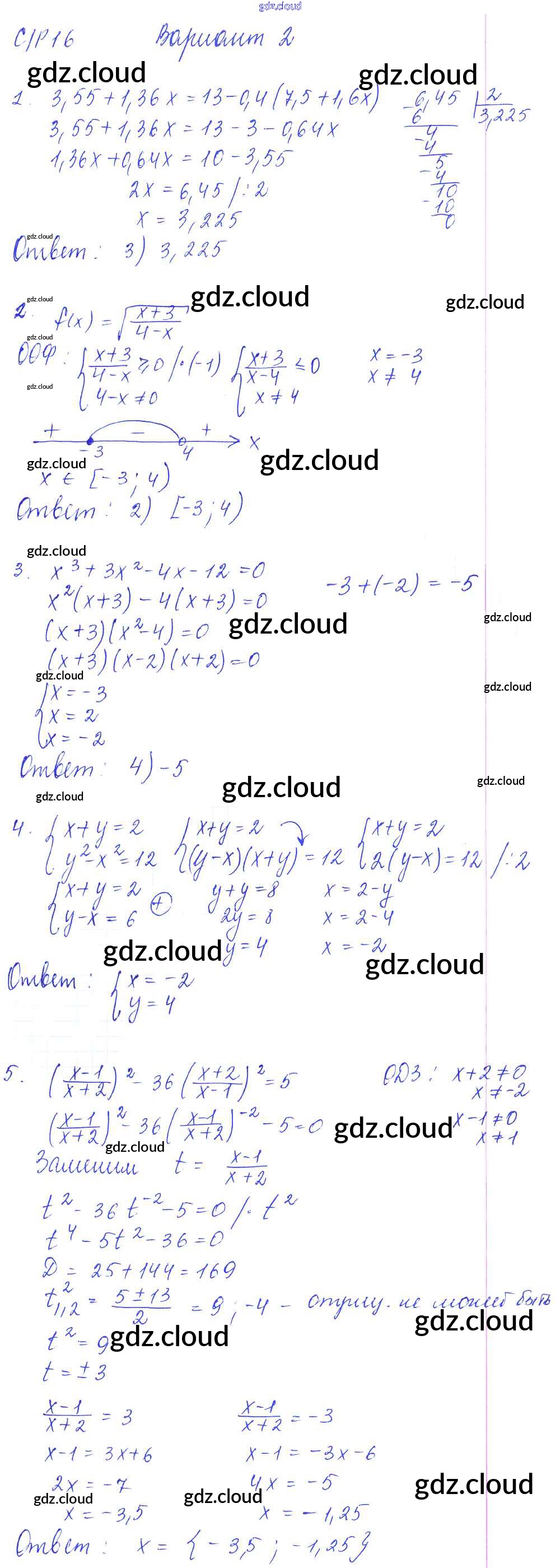 СР-16. Итоговое повторение. Решение уравнений, неравенств и их систем Ответы к Самостоятельным работам по Алгебре 9 класс Самостоятельные и контрольные работы Глазков УМК Экзамен