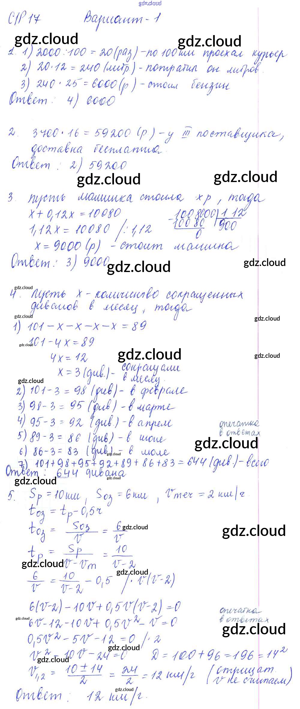 СР-17. Итоговое повторение. Решение текстовых задач Ответы к Самостоятельным работам по Алгебре 9 класс Самостоятельные и контрольные работы Глазков УМК Экзамен