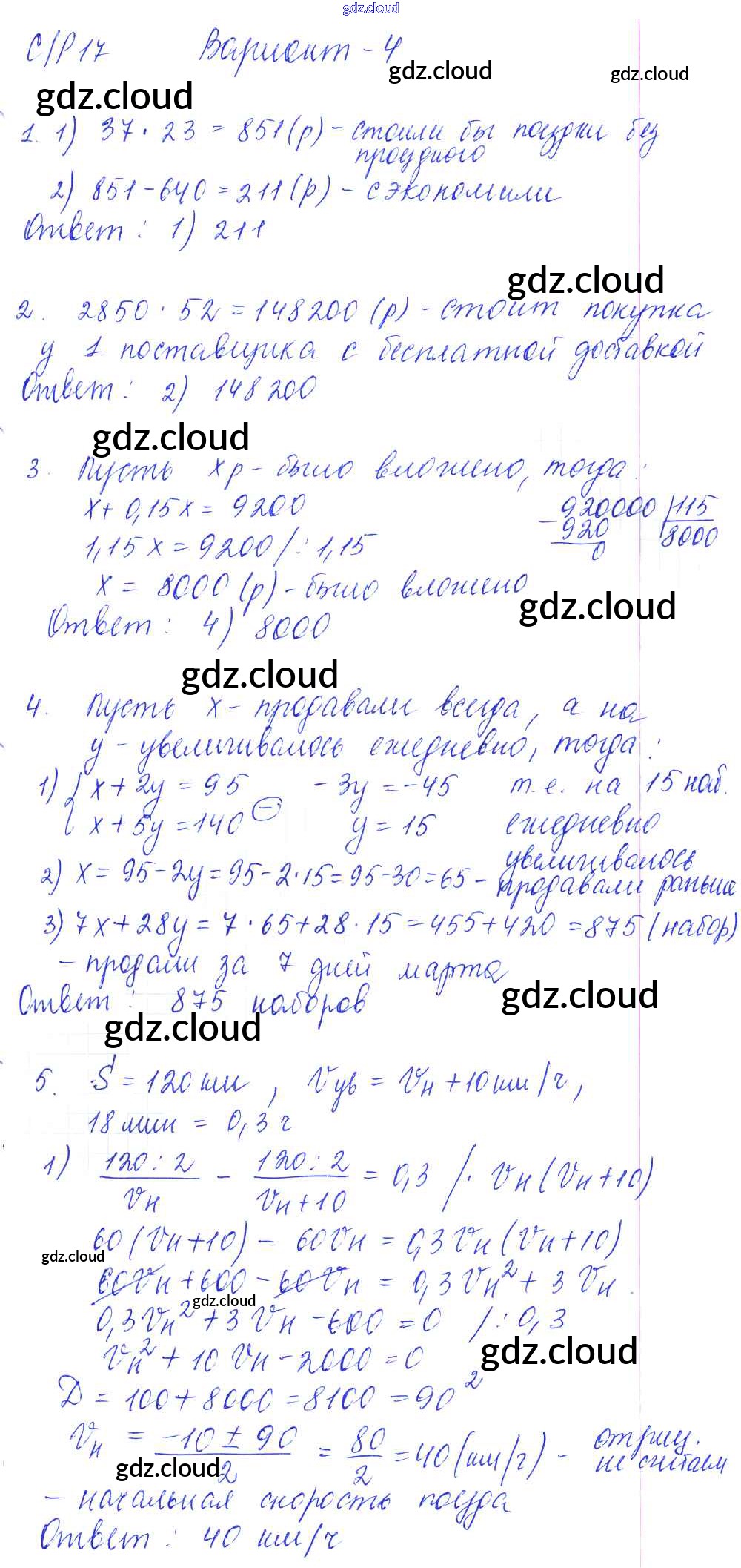 СР-17. Итоговое повторение. Решение текстовых задач Ответы к Самостоятельным работам по Алгебре 9 класс Самостоятельные и контрольные работы Глазков УМК Экзамен