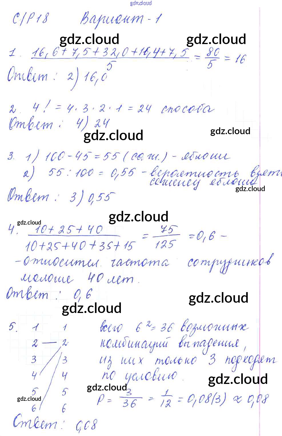 СР-18. Итоговое повторение. Элементы статистики и теории вероятностей Ответы к Самостоятельным работам по Алгебре 9 класс Самостоятельные и контрольные работы Глазков УМК Экзамен