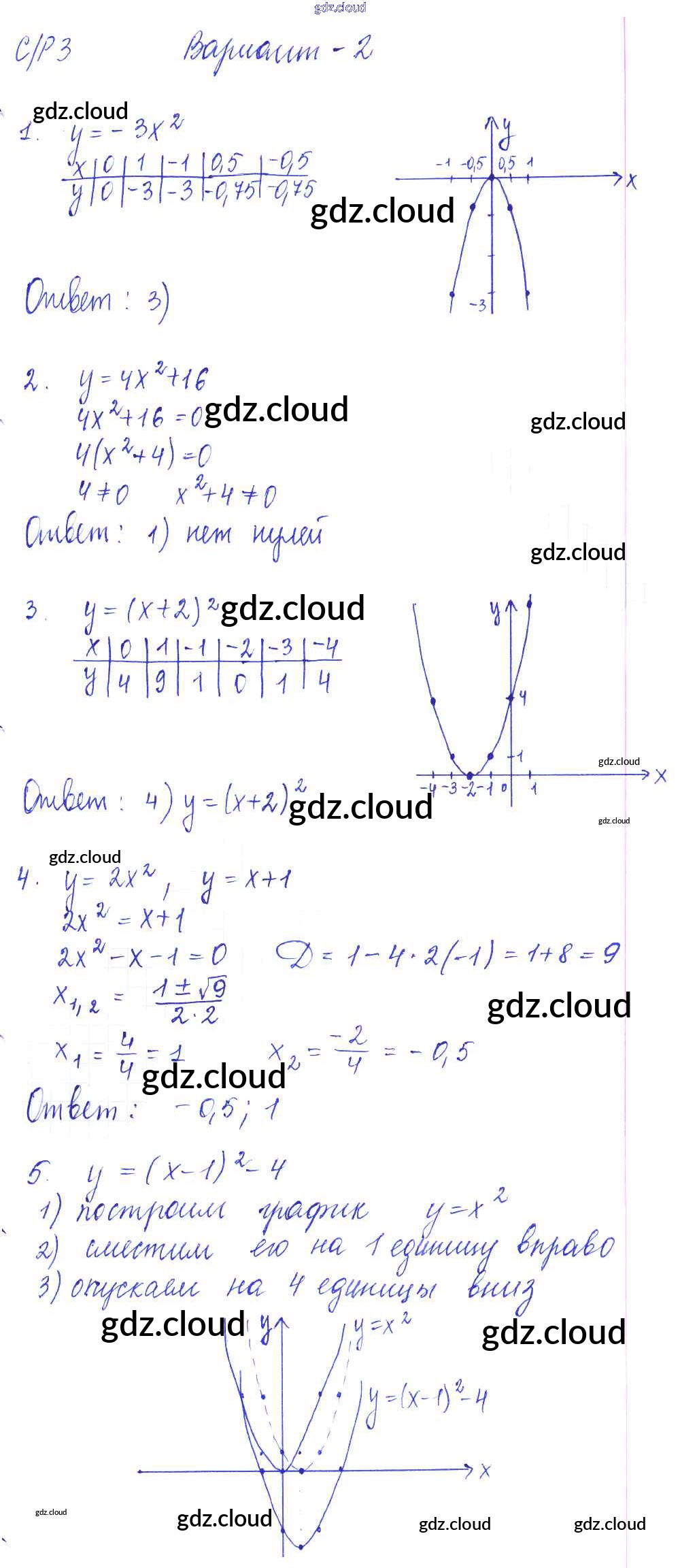 СР-3. Квадратичная функция и её график Ответы к Самостоятельным работам по Алгебре 9 класс Самостоятельные и контрольные работы Глазков УМК Экзамен