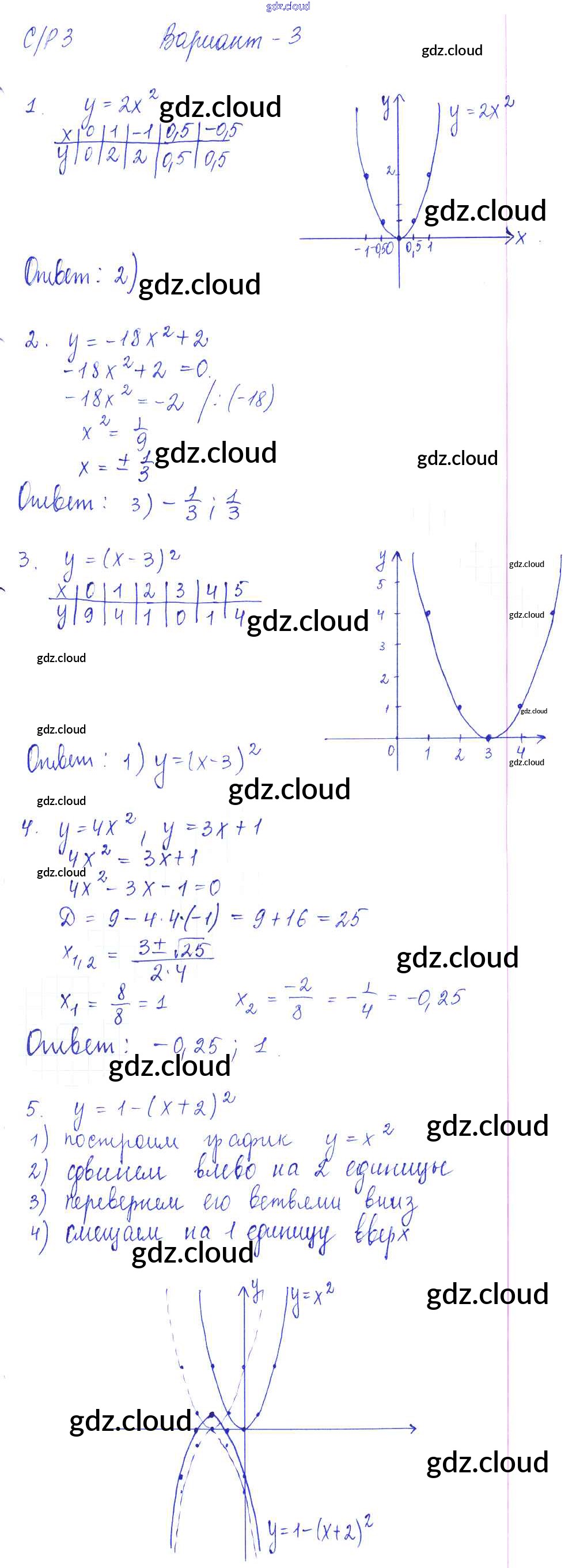 СР-3. Квадратичная функция и её график Ответы к Самостоятельным работам по Алгебре 9 класс Самостоятельные и контрольные работы Глазков УМК Экзамен
