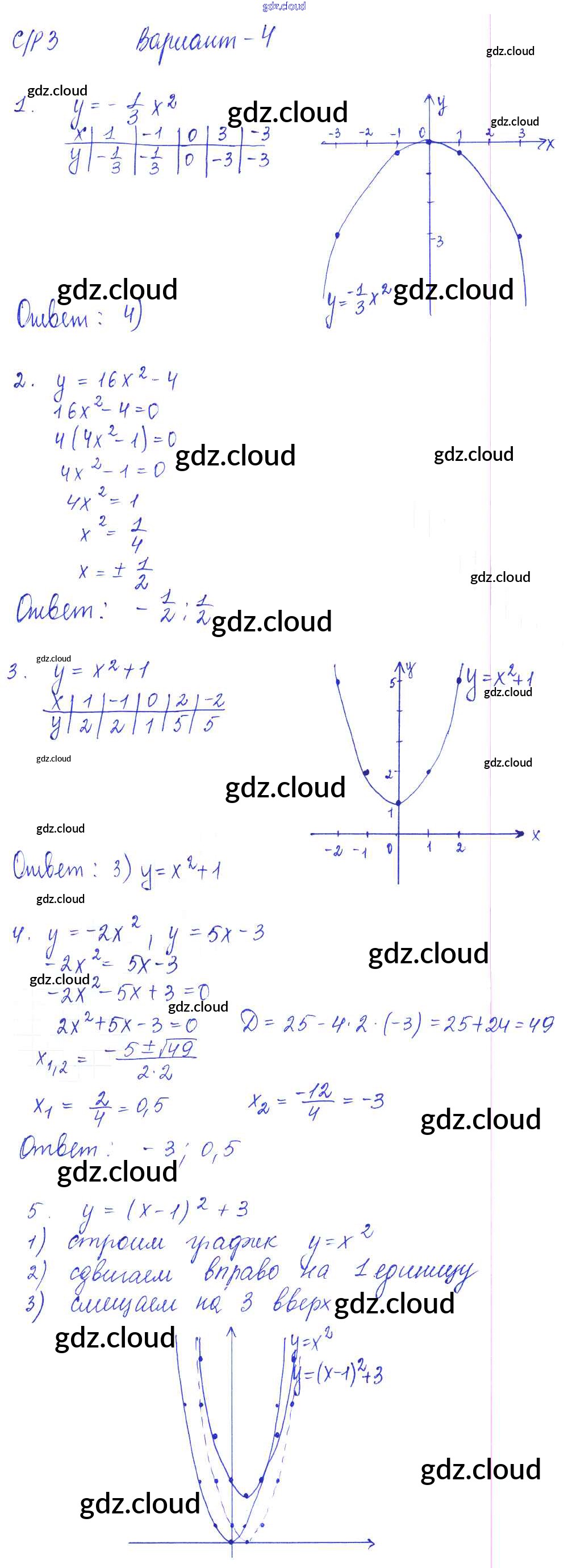 СР-3. Квадратичная функция и её график Ответы к Самостоятельным работам по Алгебре 9 класс Самостоятельные и контрольные работы Глазков УМК Экзамен