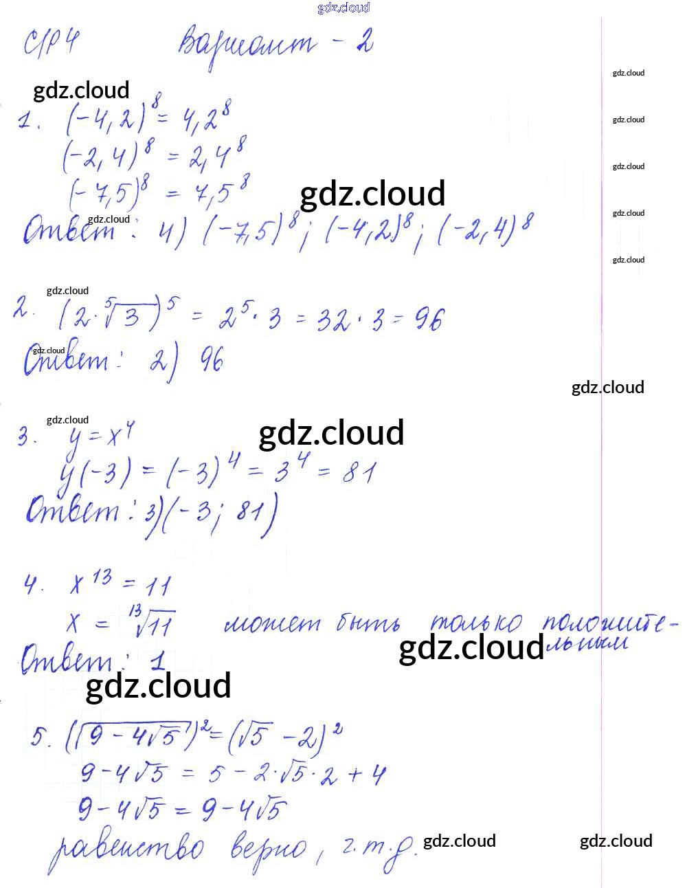 СР-4. Степенная функция. Корень n-й степени Ответы к Самостоятельным работам по Алгебре 9 класс Самостоятельные и контрольные работы Глазков УМК Экзамен