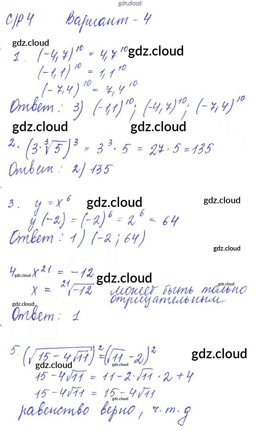 СР-4. Степенная функция. Корень n-й степени Ответы к Самостоятельным работам по Алгебре 9 класс Самостоятельные и контрольные работы Глазков УМК Экзамен