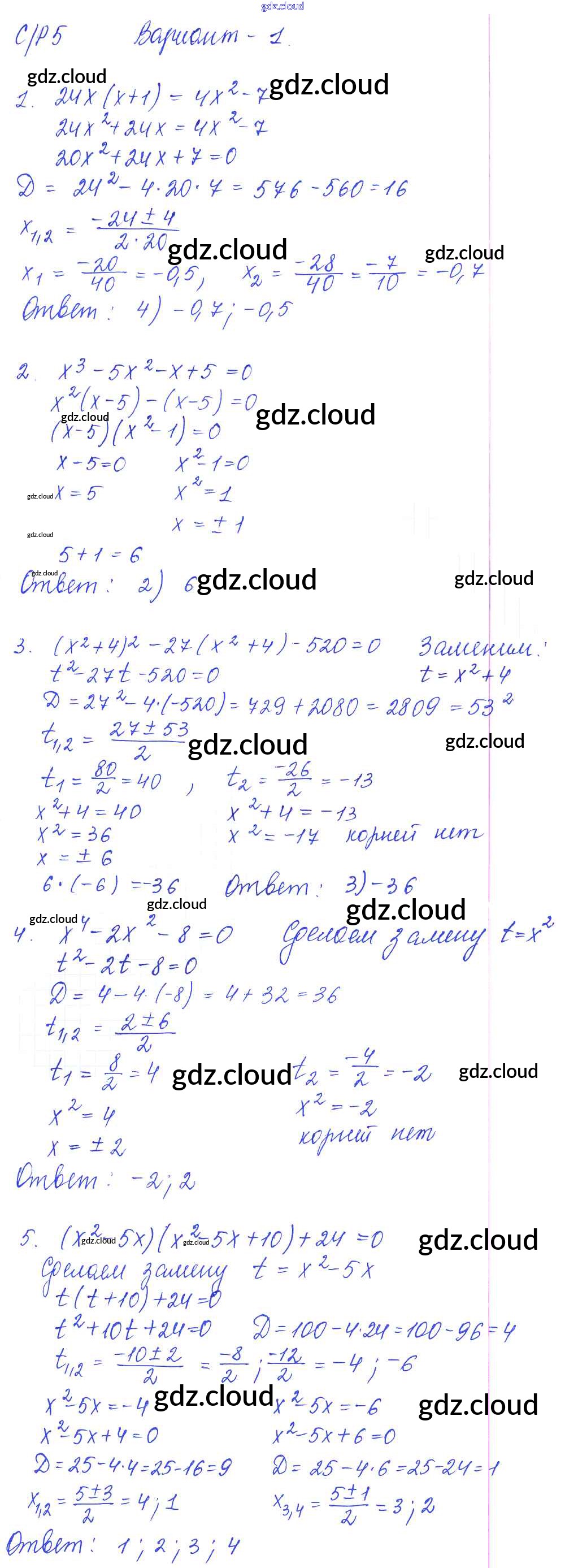 СР-5. Уравнения с одной переменной Ответы к Самостоятельным работам по Алгебре 9 класс Самостоятельные и контрольные работы Глазков УМК Экзамен