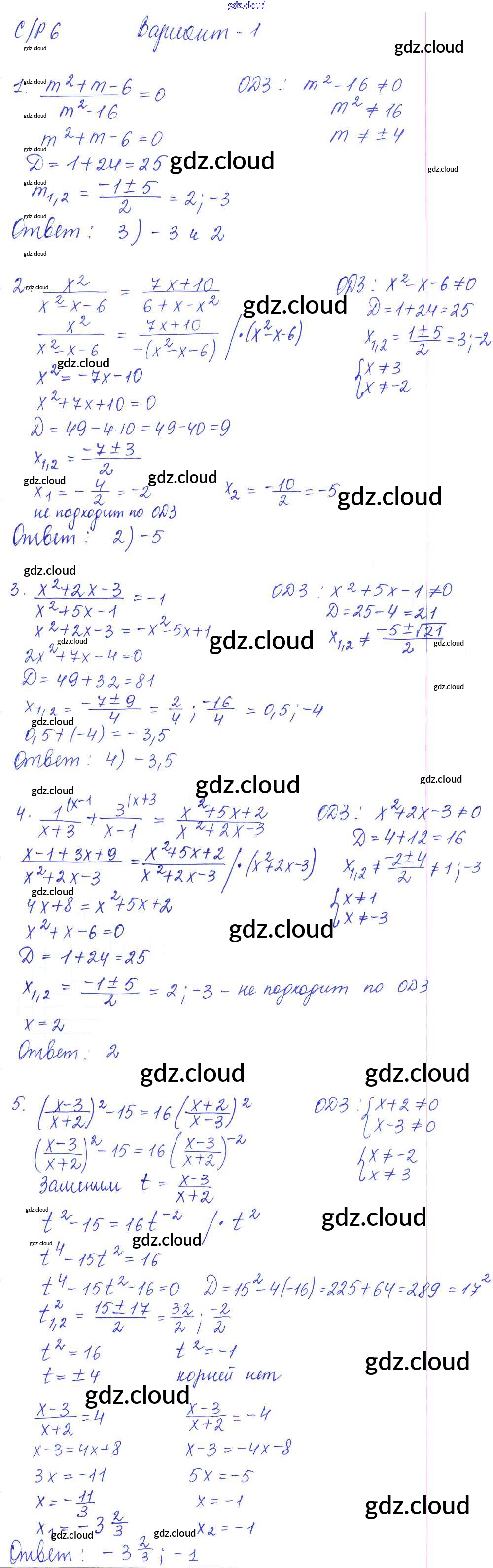 СР-6. Дробные рациональные уравнения Ответы к Самостоятельным работам по Алгебре 9 класс Самостоятельные и контрольные работы Глазков УМК Экзамен
