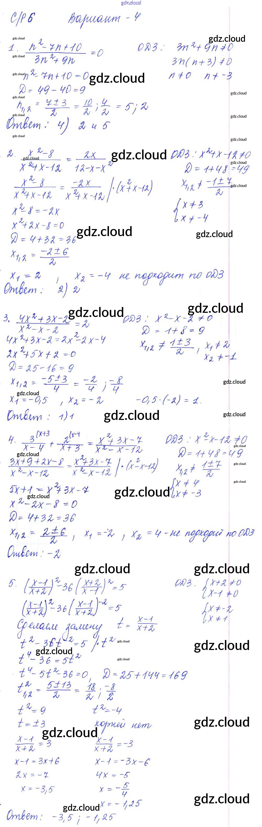 СР-6. Дробные рациональные уравнения Ответы к Самостоятельным работам по Алгебре 9 класс Самостоятельные и контрольные работы Глазков УМК Экзамен