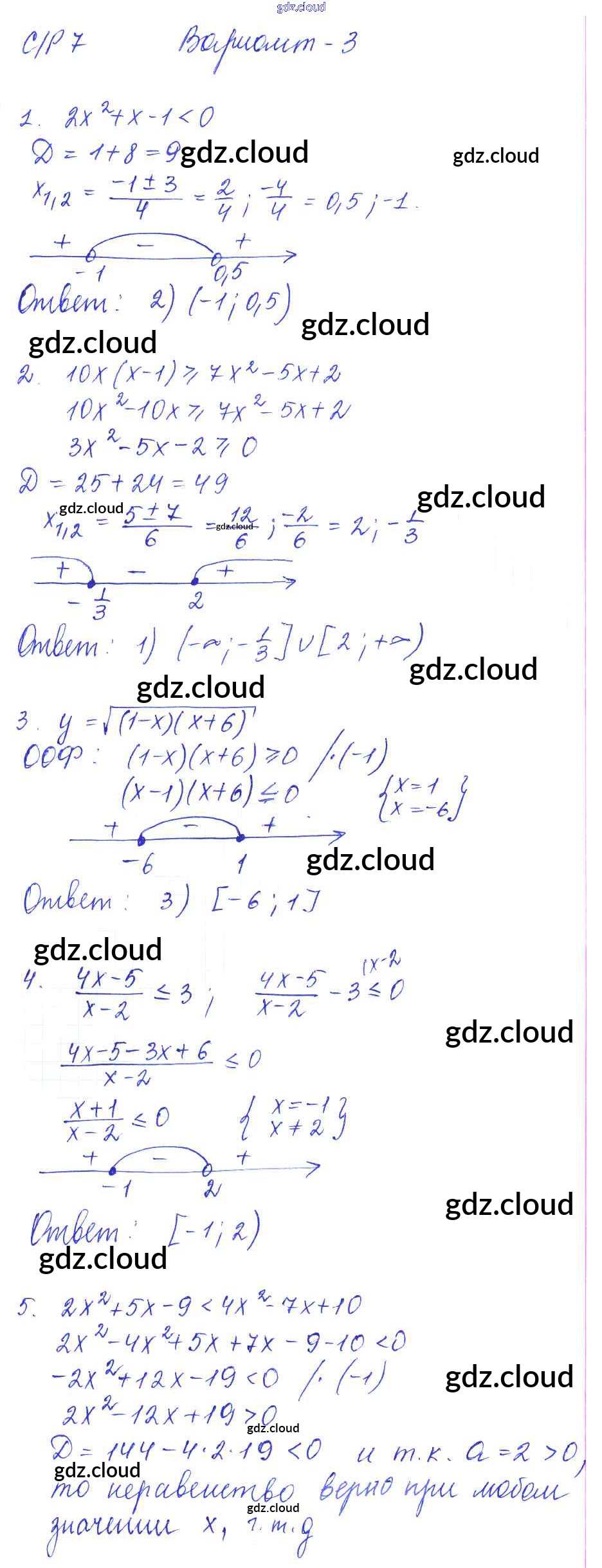 СР-7. Неравенства с одной переменной Ответы к Самостоятельным работам по Алгебре 9 класс Самостоятельные и контрольные работы Глазков УМК Экзамен