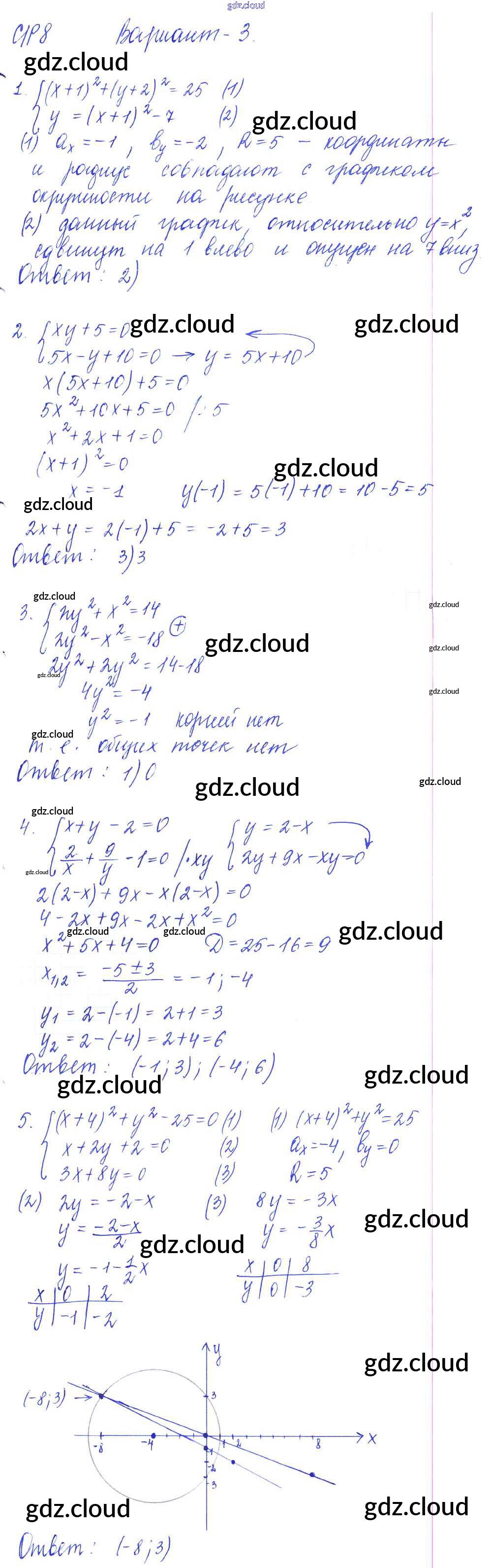 СР-8. Уравнения с двумя переменными и их системы Ответы к Самостоятельным работам по Алгебре 9 класс Самостоятельные и контрольные работы Глазков УМК Экзамен