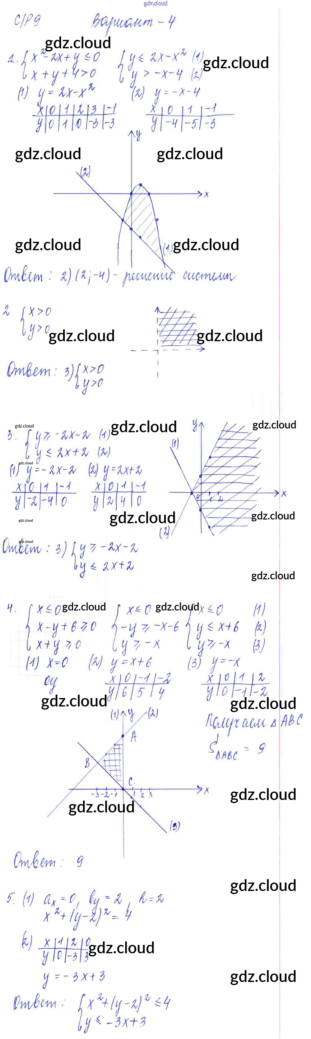 СР-9. Неравенства с двумя переменными и их системы Ответы к Самостоятельным работам по Алгебре 9 класс Самостоятельные и контрольные работы Глазков УМК Экзамен