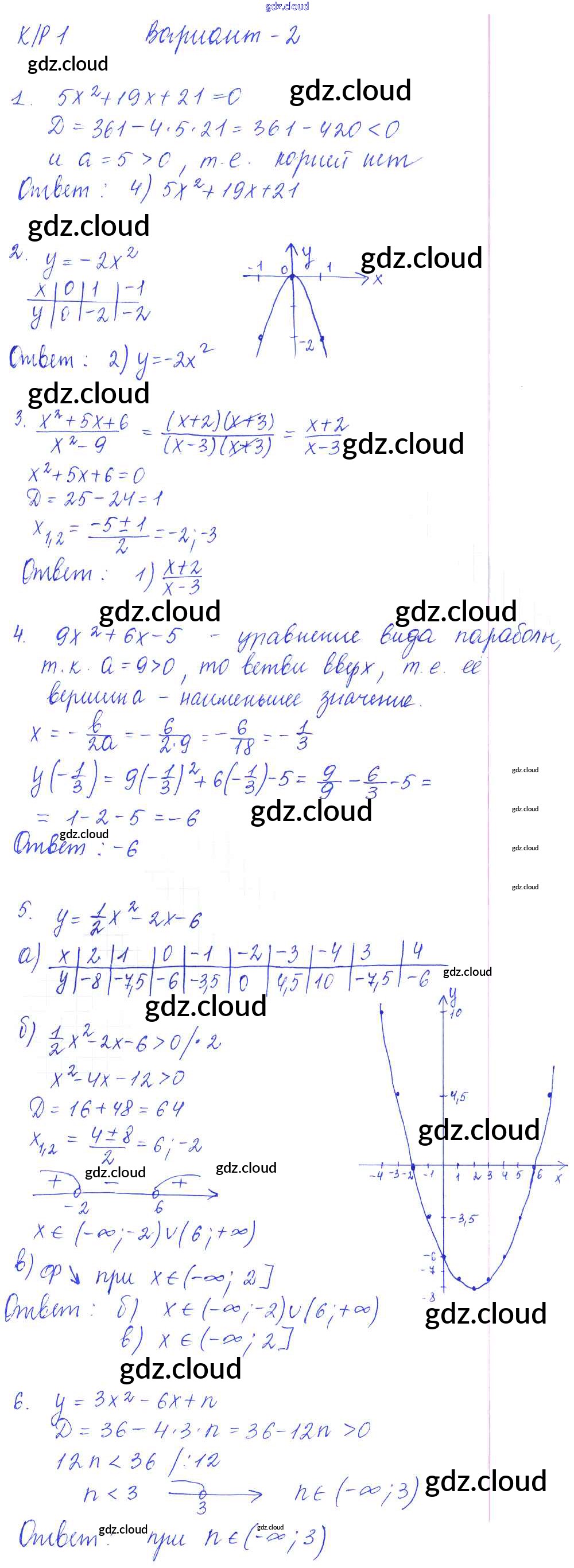 КР-1. Функции и их свойства. Квадратный трехчлен. Квадратичная функция и её график Ответы к Контрольным работам по Алгебре 9 класс Самостоятельные и контрольные работы Глазков УМК Экзамен