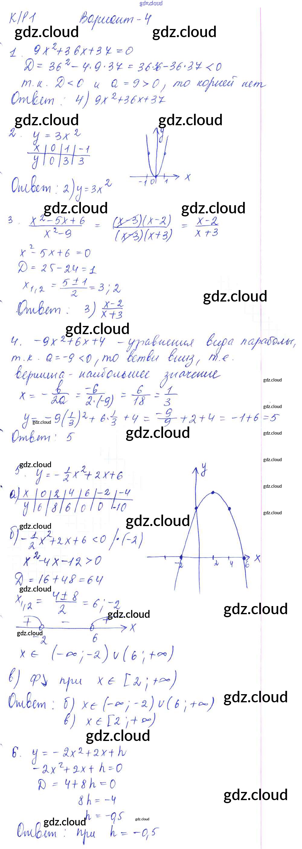 КР-1. Функции и их свойства. Квадратный трехчлен. Квадратичная функция и её график Ответы к Контрольным работам по Алгебре 9 класс Самостоятельные и контрольные работы Глазков УМК Экзамен