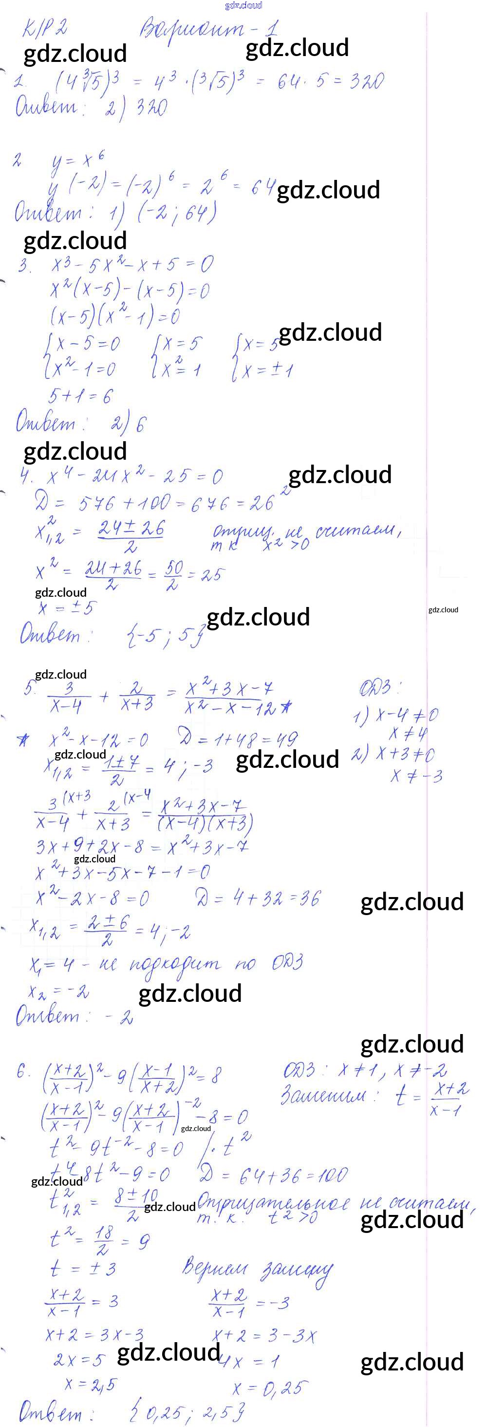 КР-2. Степенная функция. Корень n-й степени. Уравнения с одной переменной Ответы к Контрольным работам по Алгебре 9 класс Самостоятельные и контрольные работы Глазков УМК Экзамен