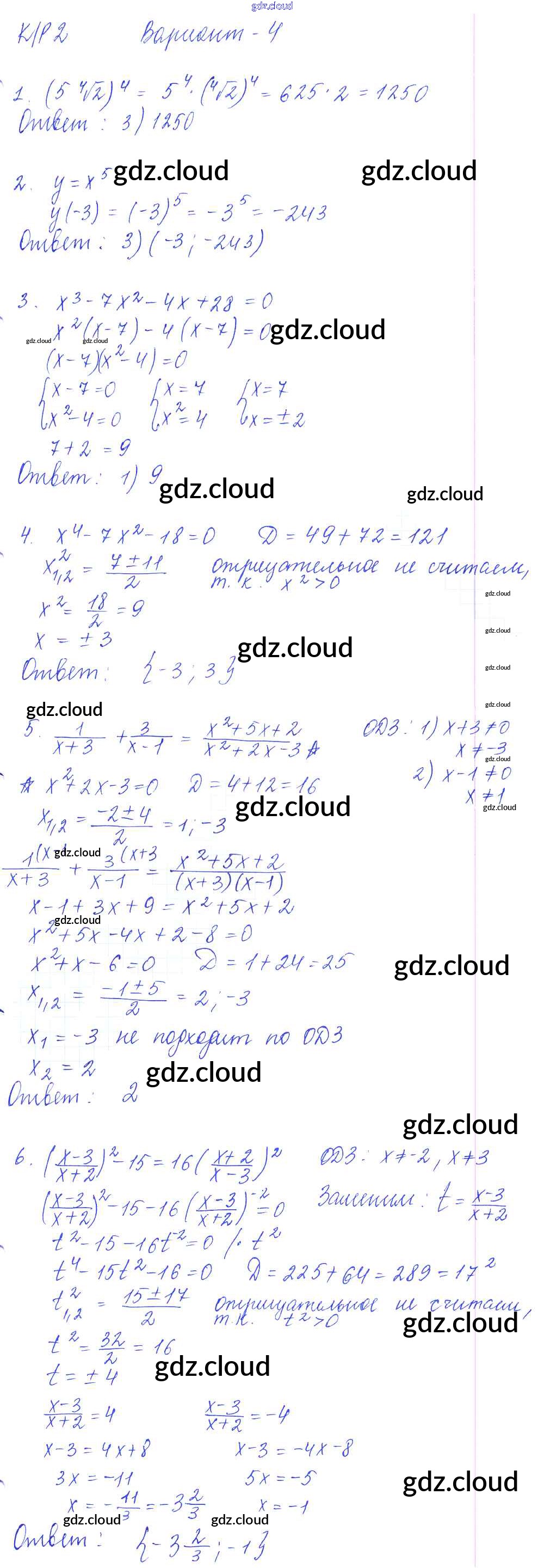 КР-2. Степенная функция. Корень n-й степени. Уравнения с одной переменной Ответы к Контрольным работам по Алгебре 9 класс Самостоятельные и контрольные работы Глазков УМК Экзамен
