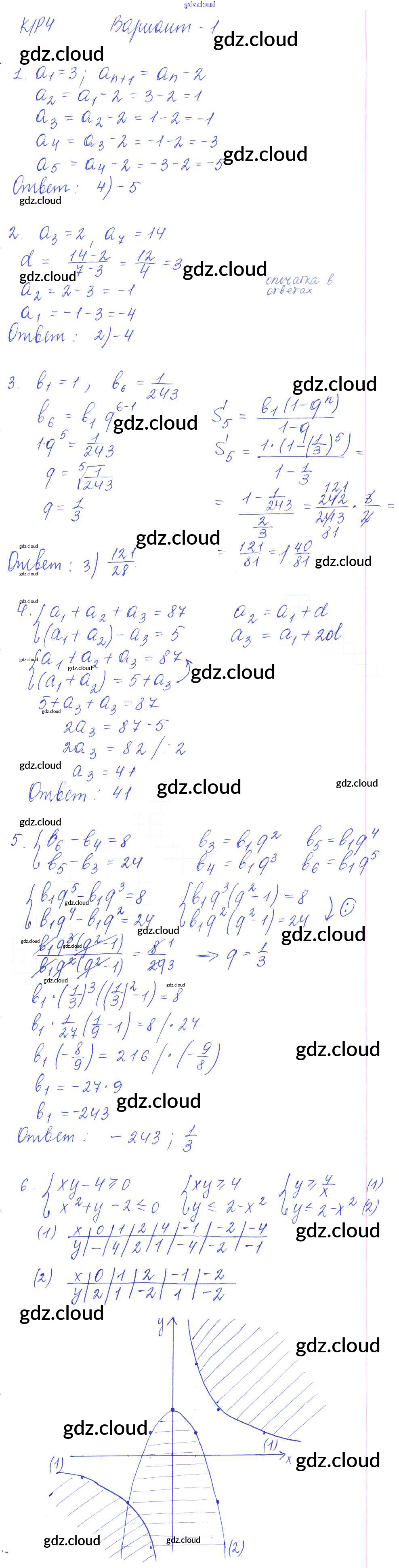 КР-4. Неравенства с двумя переменными и их системы. Арифметическая и геометрическая прогрессии Ответы к Контрольным работам по Алгебре 9 класс Самостоятельные и контрольные работы Глазков УМК Экзамен