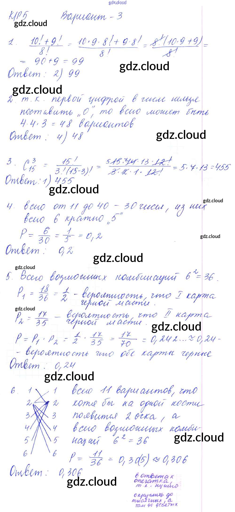 КР-5. Элементы комбинаторики и теории вероятностей Ответы к Контрольным работам по Алгебре 9 класс Самостоятельные и контрольные работы Глазков УМК Экзамен