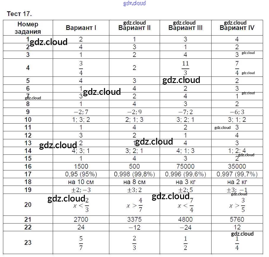 Ответ на задание тест №17 Тесты Алгебра за 9 (девятый) класс Глазков, Варшавский, Гаиашвили УМК 2011 ФГОС онлайн и без номера телефона.