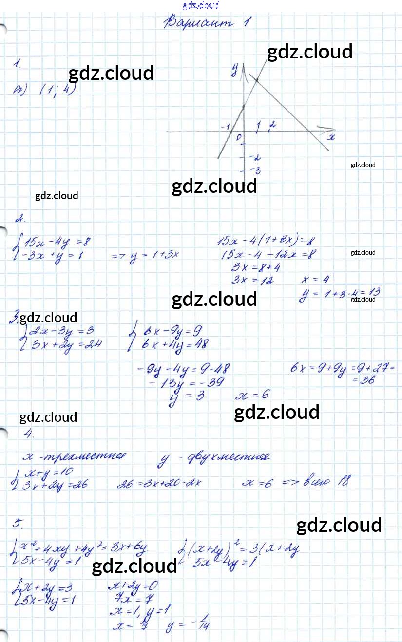 Ответ на задание 1 Контрольные работы Алгебра за 7, 8, 9 (седьмой, восьмой, девятый) класс Мордкович Углубленный уровень 2016