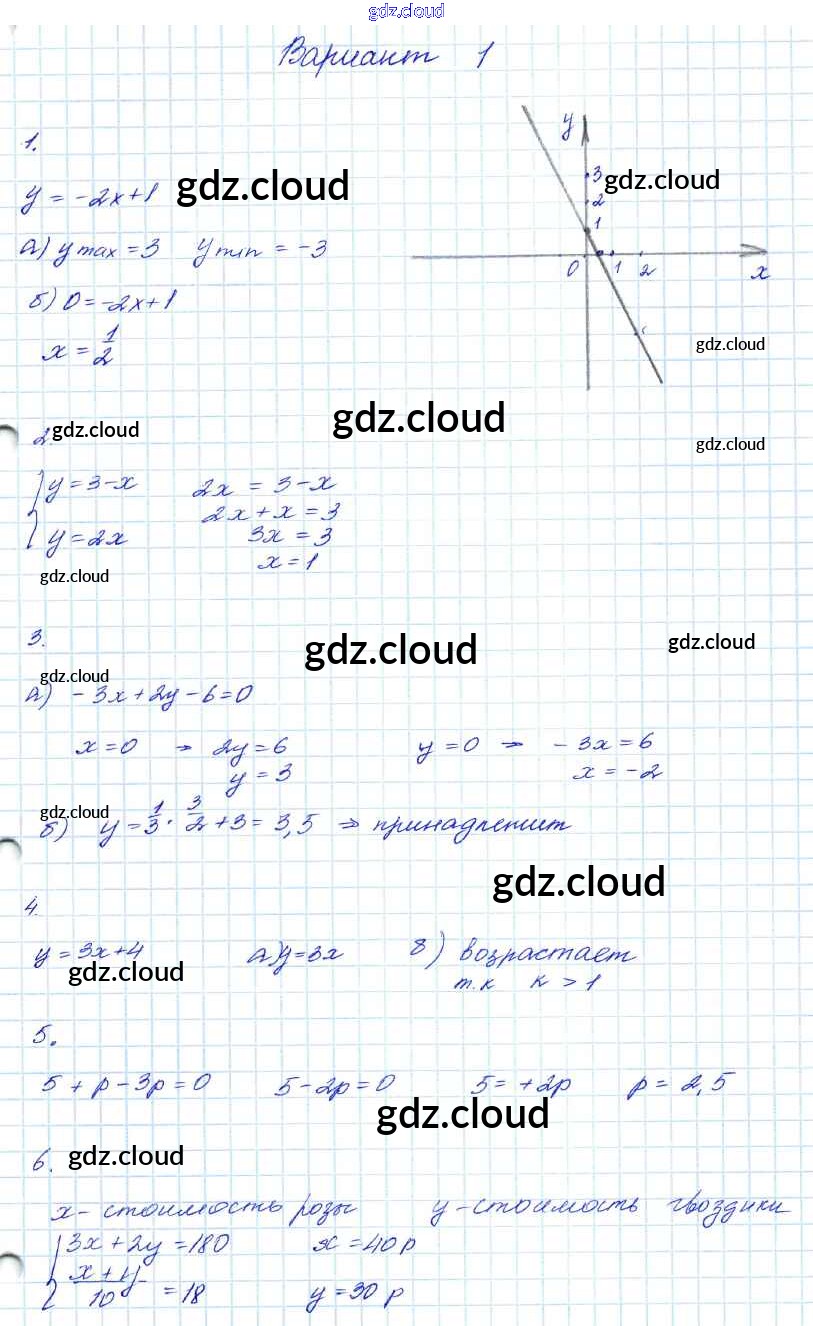 Ответ на задание 1 Контрольные работы Алгебра за 7, 8, 9 (седьмой, восьмой, девятый) класс Мордкович Углубленный уровень 2016