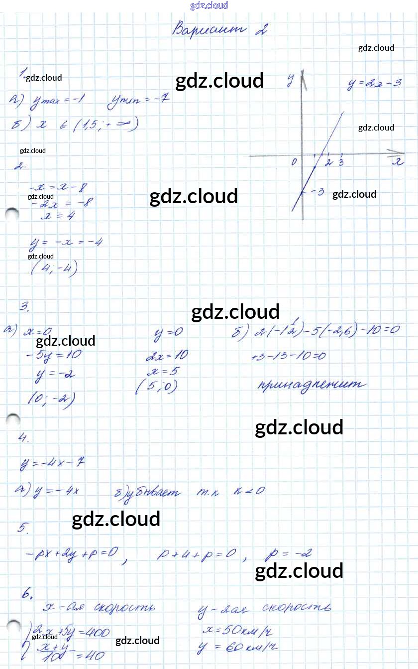 Ответ на задание 2 Контрольные работы Алгебра за 7, 8, 9 (седьмой, восьмой, девятый) класс Мордкович Углубленный уровень 2016