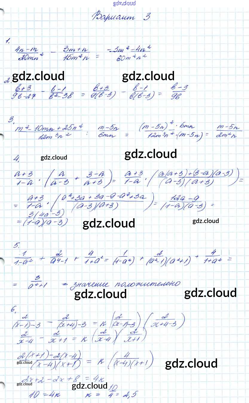 Ответ на задание 3 Контрольные работы Алгебра за 7, 8, 9 (седьмой, восьмой, девятый) класс Мордкович Углубленный уровень 2016