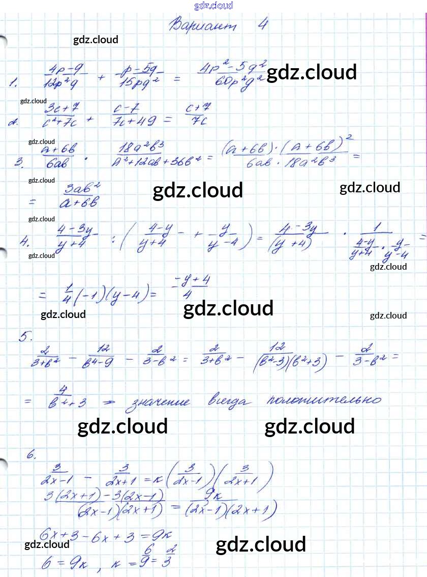 Ответ на задание 4 Контрольные работы Алгебра за 7, 8, 9 (седьмой, восьмой, девятый) класс Мордкович Углубленный уровень 2016