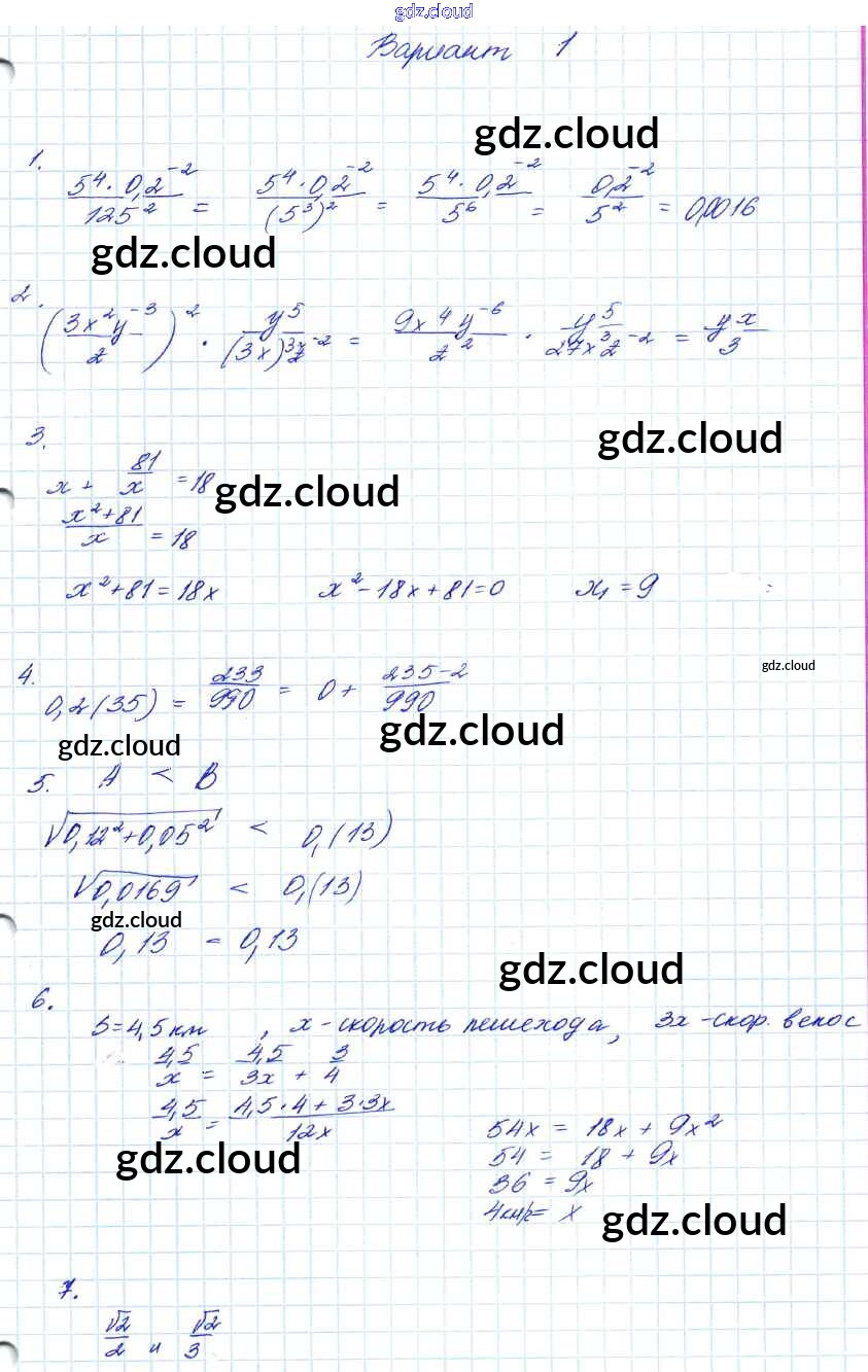 Ответ на задание 1 Контрольные работы Алгебра за 7, 8, 9 (седьмой, восьмой, девятый) класс Мордкович Углубленный уровень 2016