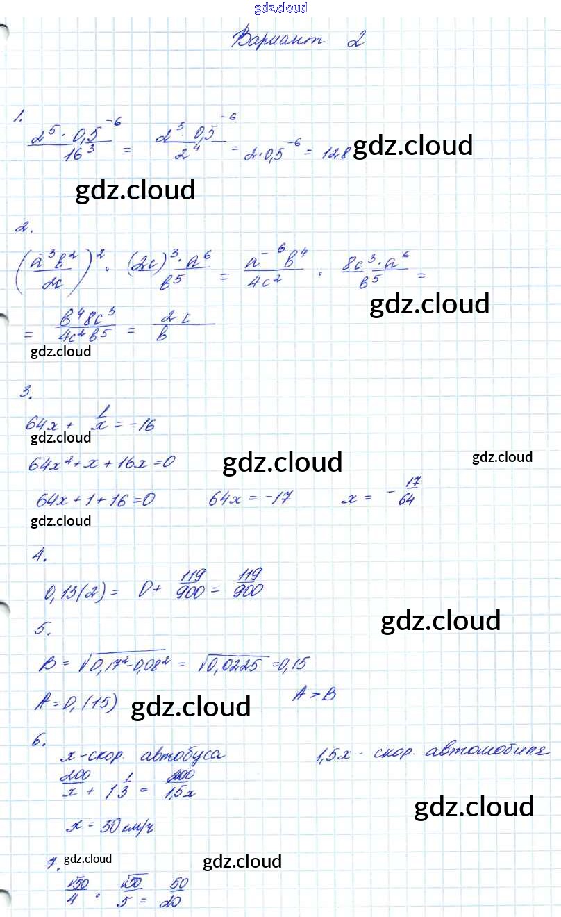 Ответ на задание 2 Контрольные работы Алгебра за 7, 8, 9 (седьмой, восьмой, девятый) класс Мордкович Углубленный уровень 2016