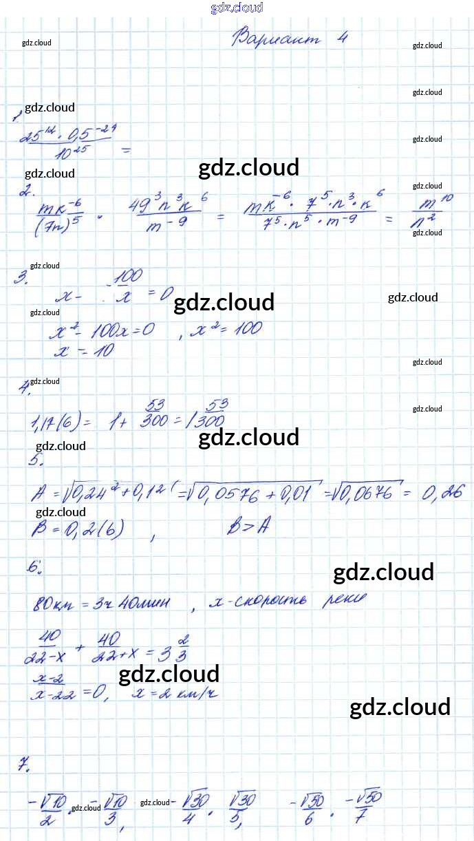 Ответ на задание 4 Контрольные работы Алгебра за 7, 8, 9 (седьмой, восьмой, девятый) класс Мордкович Углубленный уровень 2016