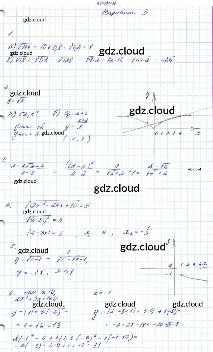 КР-3. Варианты Ответы к 8 Класс по Алгебре 7, 8, 9 класс Контрольные работы Мордкович Углубленный уровень Мнемозина