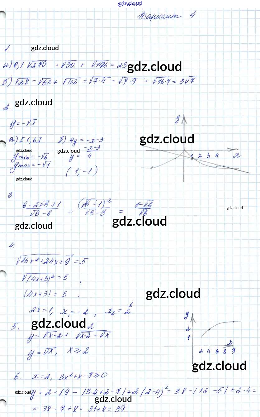 Ответ на задание 4 Контрольные работы Алгебра за 7, 8, 9 (седьмой, восьмой, девятый) класс Мордкович Углубленный уровень 2016