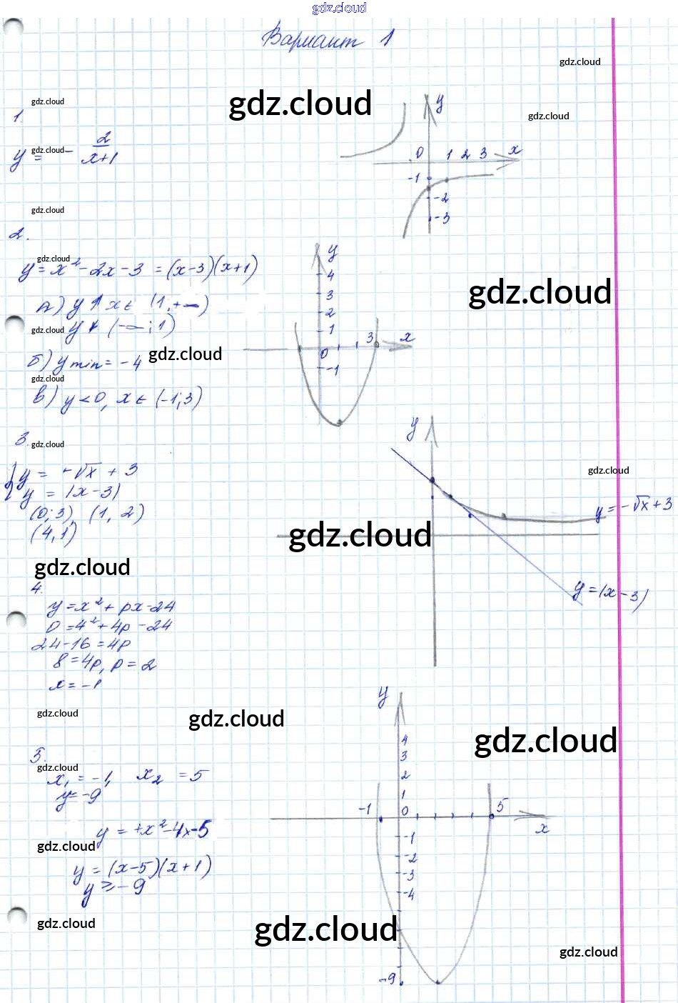 Ответ на задание 1 Контрольные работы Алгебра за 7, 8, 9 (седьмой, восьмой, девятый) класс Мордкович Углубленный уровень 2016