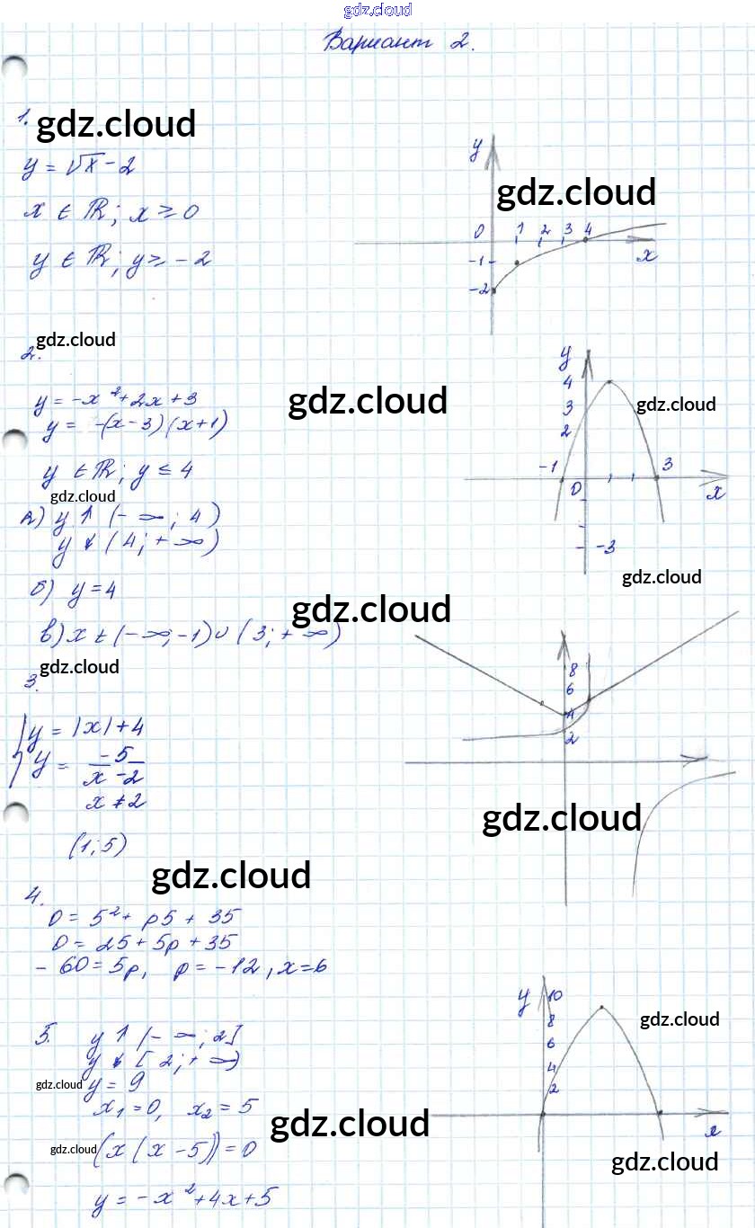 Ответ на задание 2 Контрольные работы Алгебра за 7, 8, 9 (седьмой, восьмой, девятый) класс Мордкович Углубленный уровень 2016