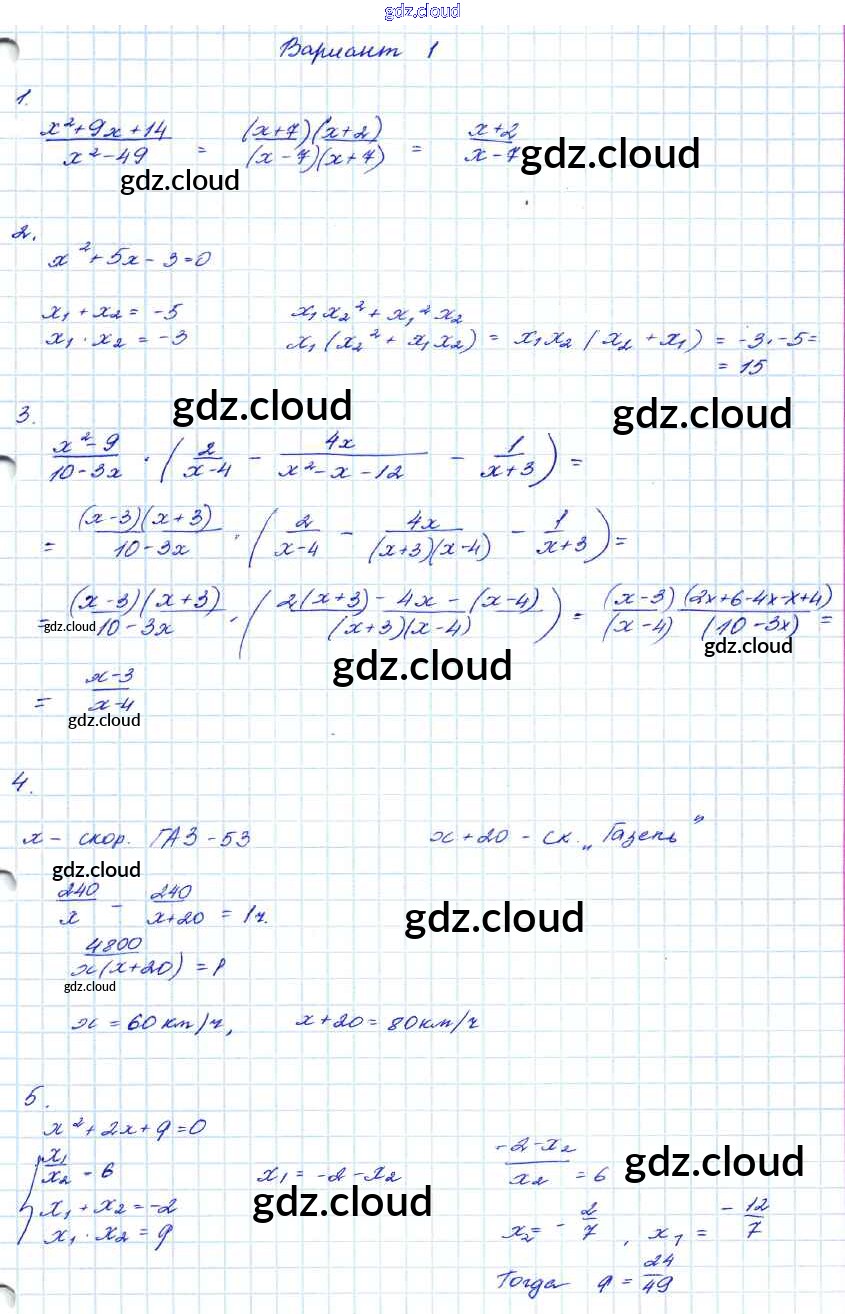 Ответ на задание 1 Контрольные работы Алгебра за 7, 8, 9 (седьмой, восьмой, девятый) класс Мордкович Углубленный уровень 2016