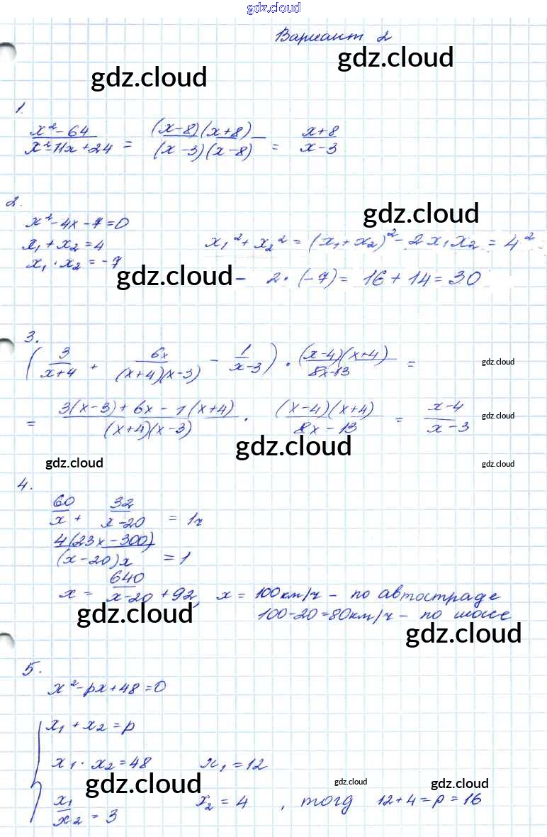 Ответ на задание 2 Контрольные работы Алгебра за 7, 8, 9 (седьмой, восьмой, девятый) класс Мордкович Углубленный уровень 2016