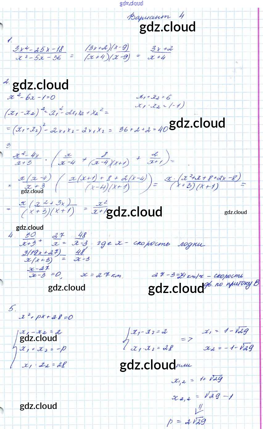Ответ на задание 4 Контрольные работы Алгебра за 7, 8, 9 (седьмой, восьмой, девятый) класс Мордкович Углубленный уровень 2016