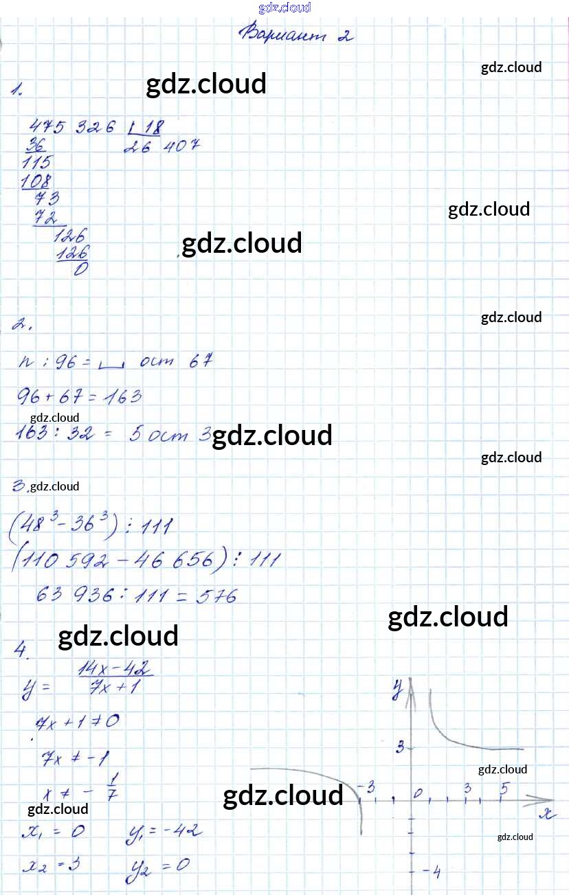 Ответ на задание 2 Контрольные работы Алгебра за 7, 8, 9 (седьмой, восьмой, девятый) класс Мордкович Углубленный уровень 2016