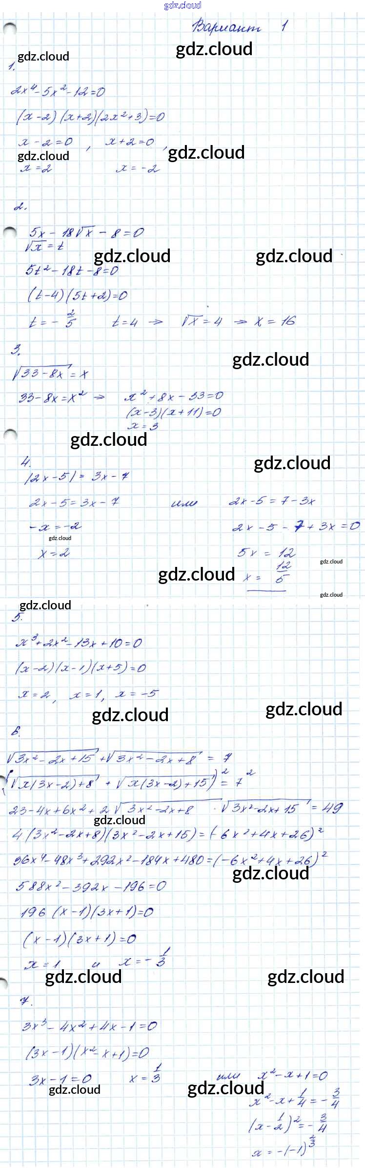 Ответ на задание 1 Контрольные работы Алгебра за 7, 8, 9 (седьмой, восьмой, девятый) класс Мордкович Углубленный уровень 2016