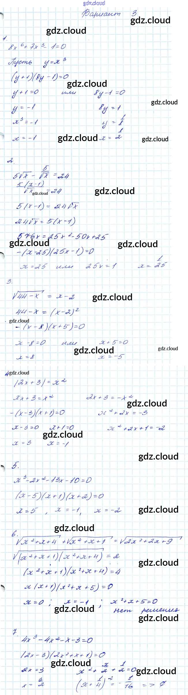 Ответ на задание 3 Контрольные работы Алгебра за 7, 8, 9 (седьмой, восьмой, девятый) класс Мордкович Углубленный уровень 2016