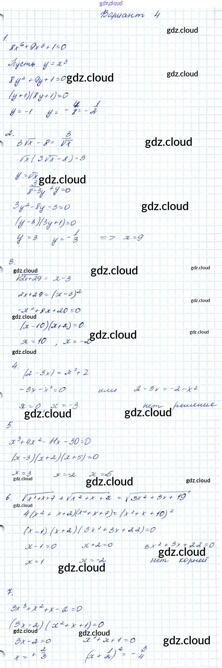 Ответ на задание 4 Контрольные работы Алгебра за 7, 8, 9 (седьмой, восьмой, девятый) класс Мордкович Углубленный уровень 2016