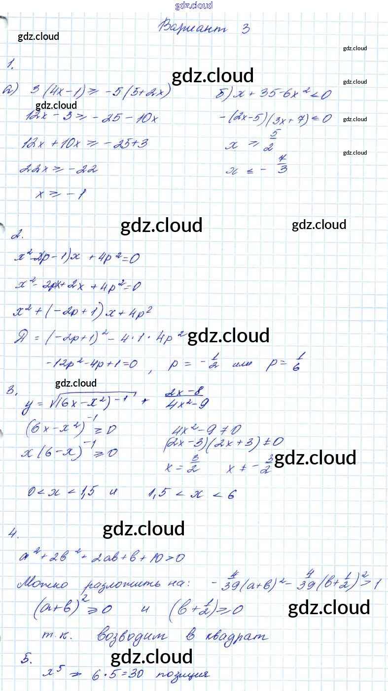 Ответ на задание 3 Контрольные работы Алгебра за 7, 8, 9 (седьмой, восьмой, девятый) класс Мордкович Углубленный уровень 2016