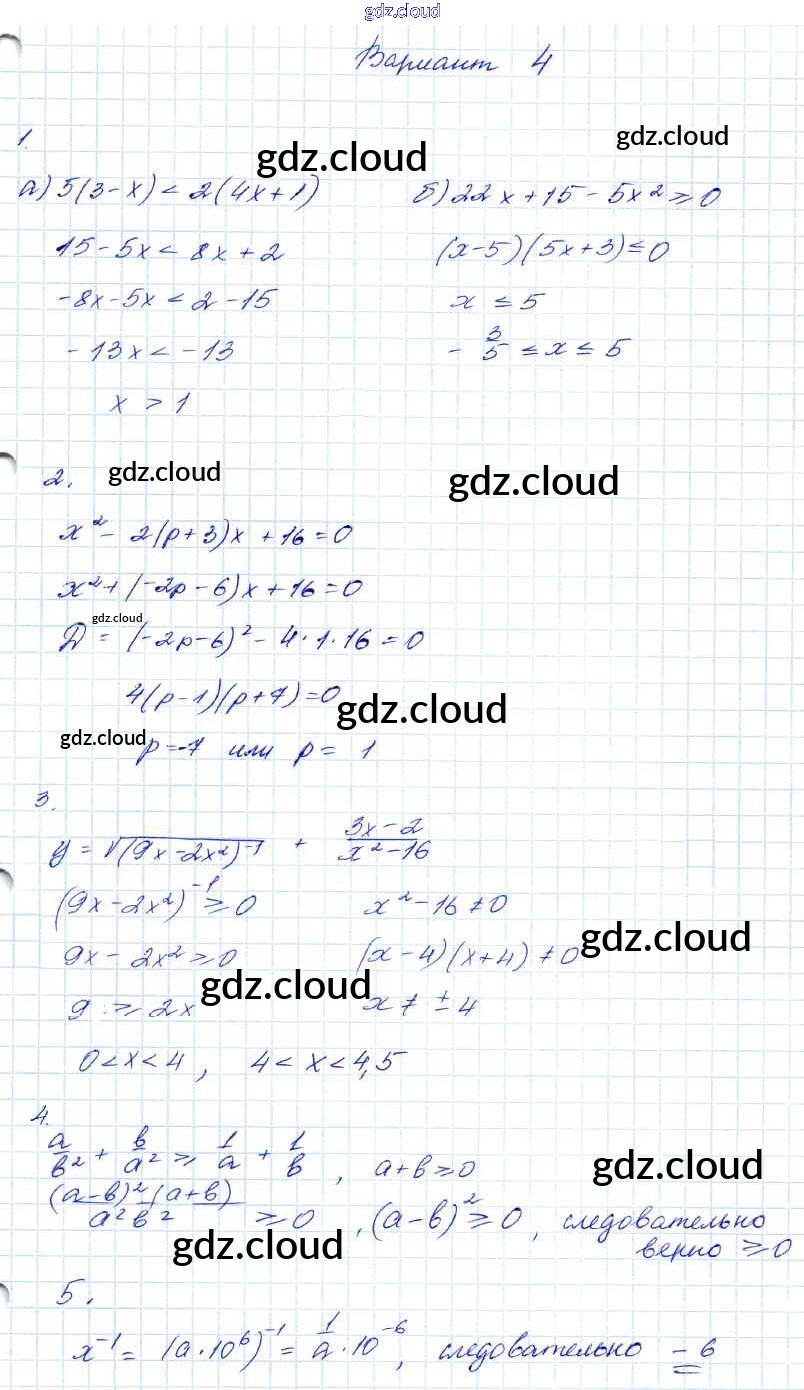 Ответ на задание 4 Контрольные работы Алгебра за 7, 8, 9 (седьмой, восьмой, девятый) класс Мордкович Углубленный уровень 2016